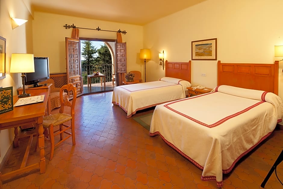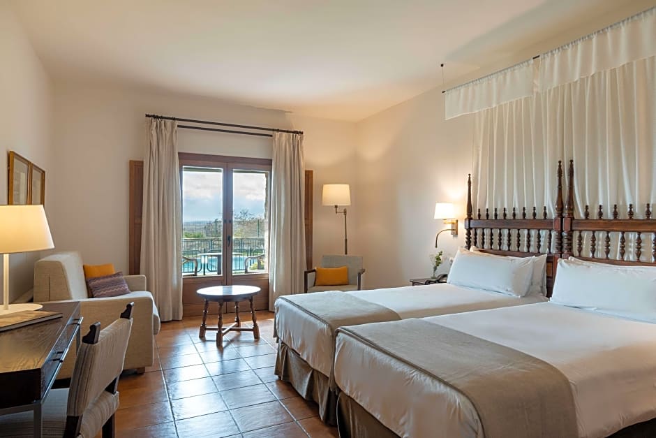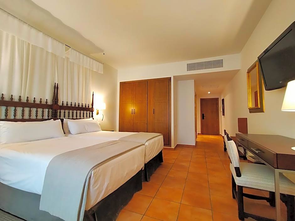 This superior twin room features a terrace, air conditioning and mini-bar. There are 2 half-canopy beds pushed together.